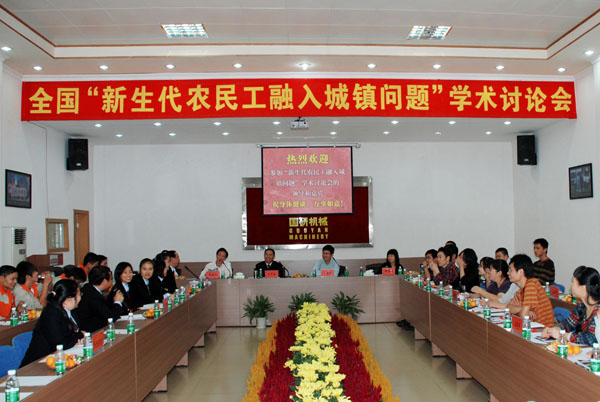 11月8日上午,由廣州市社會科學(xué)屆聯(lián)合會、廣州大學(xué)廣州發(fā)展研究院、廣州大學(xué)人權(quán)研究中心主辦的全國新生代農(nóng)民工融入城鎮(zhèn)問題學(xué)術(shù)研討會在廣州市國研機(jī)械設(shè)備制造有限公司隆重召開。中國社科院及全國多所知名高等院校專家、學(xué)者齊聚一堂,就新生代農(nóng)民工融入城鎮(zhèn)問題與我司員工代表暢所欲言、各抒己見,展開了熱烈的討論。